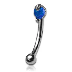 The 16 gauge opal eyebrow barbell is made from 316L stainless steel with external threading. Only the bottom 3mm ball is removable. Choose your 3mm synthetic opal color below.