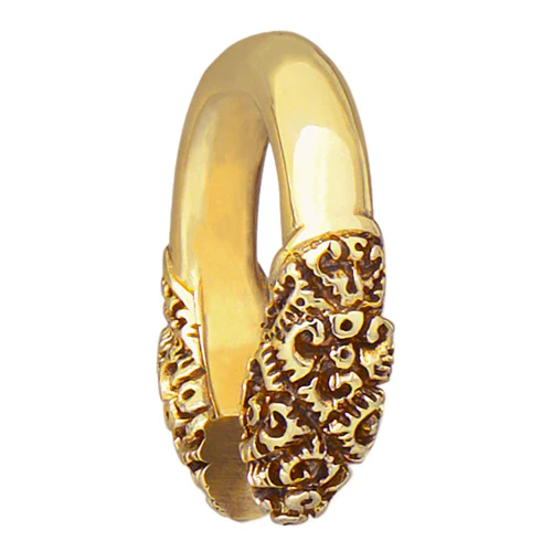 These tapon weights are cast from solid brass by Diablo Organics. They fit stretched ear lobes sizedĀ 2 gauge or larger. Available in yellow brass only.