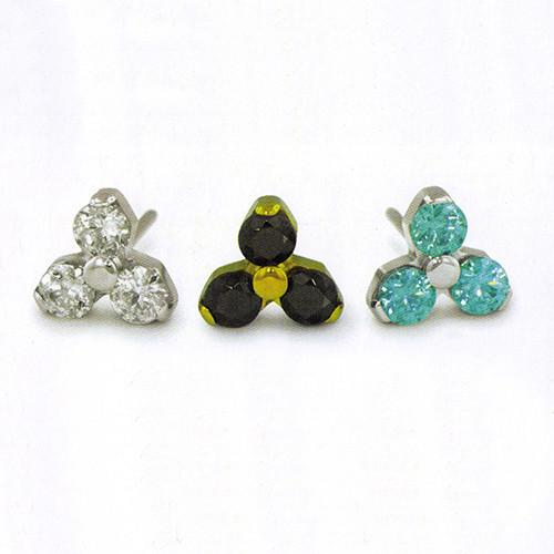 The threadless trinity cz end is made from high polish implant grade titanium (ASTM F136 6AI-4V ELI) by NeoMetal Body Jewelry. It has a 25g pin that is compatible with most threadless jewelry brands. Choose your size and cz color below.